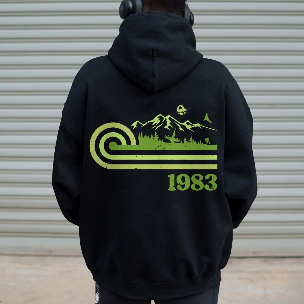 Retro Vintage Forest Moon Printed Back Unisex Cotton Hoodie