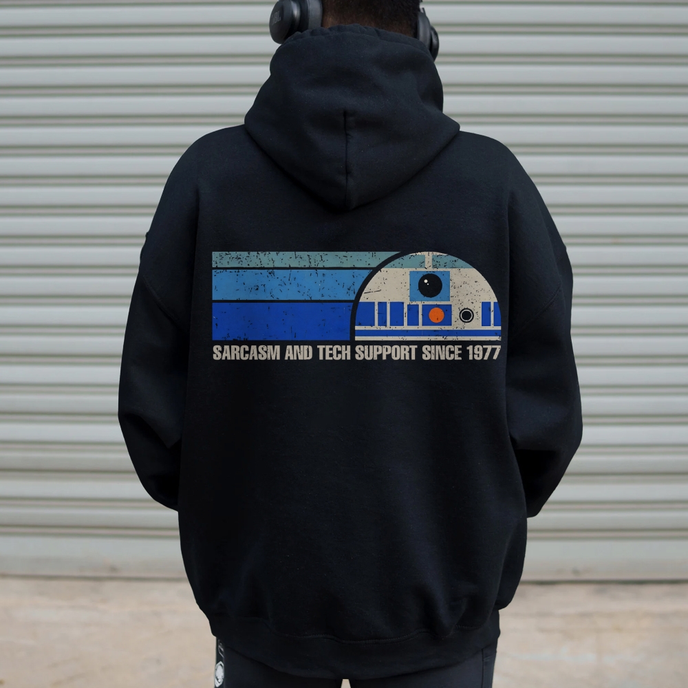 Providing Sarcasm and Tech Support Since 1977 Printed Back Unisex Cotton Hoodie