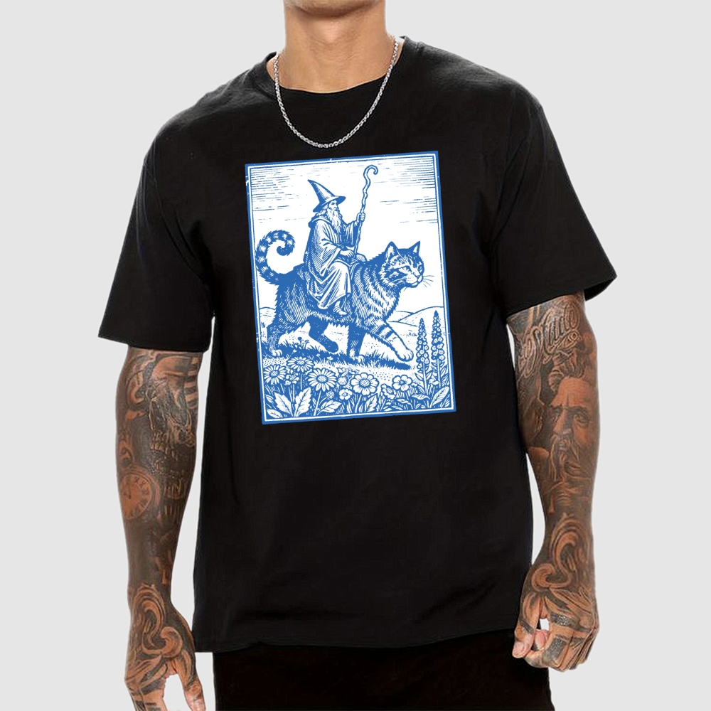Wizard Cat Rider Geek T-Shirt