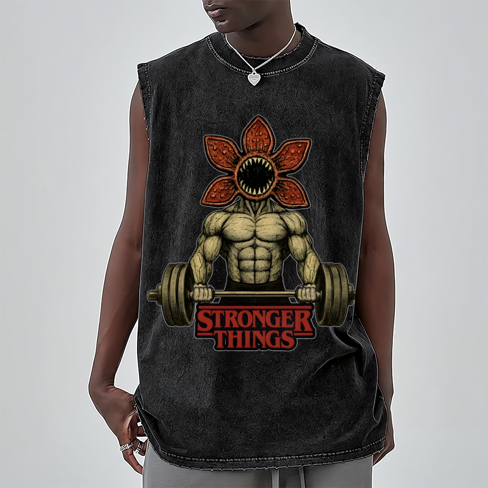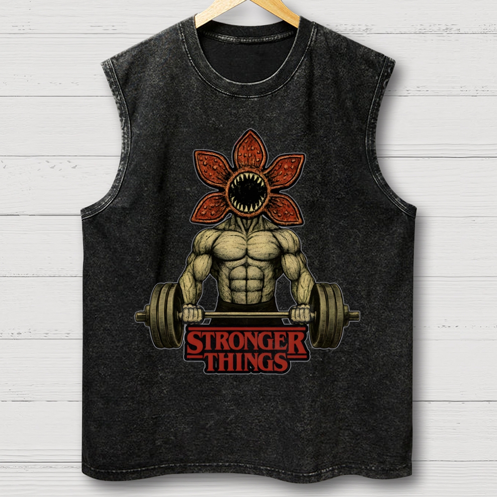 Demogorgon Weightlifting Stronger Things intage Distressed Washed Tank