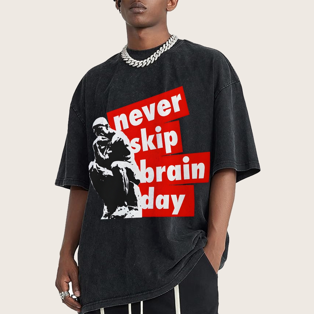Never Skip Brain Day Vintage Distressed T-shirt